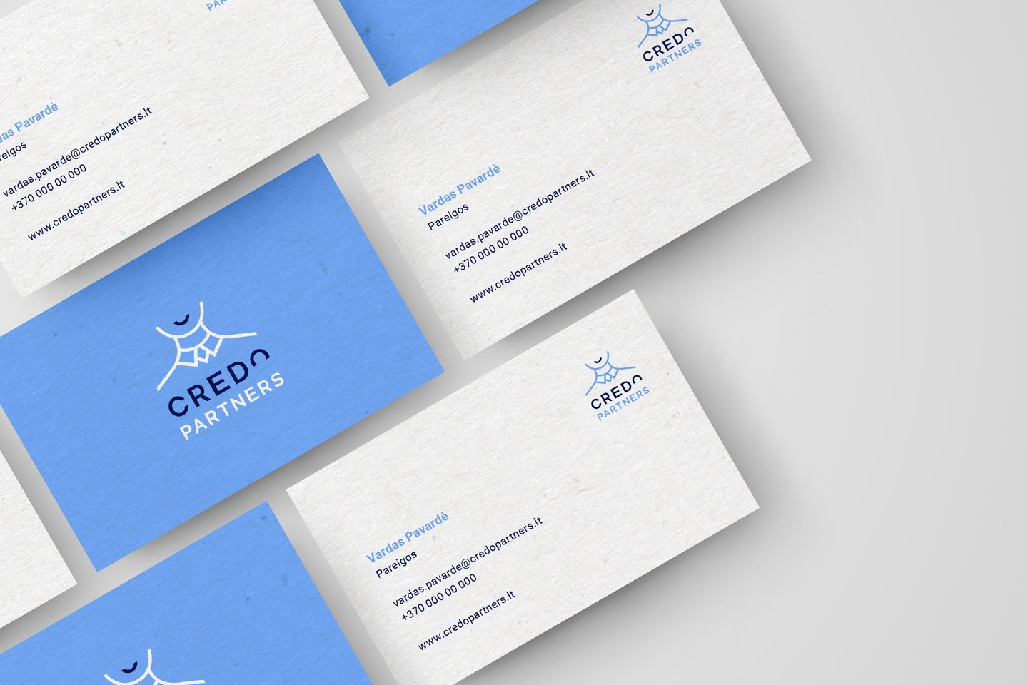 Dėl savo klientų „Credo Partners“ pasiryžę atiduoti dalį savęs ir viršyti lūkesčius, todėl pasirinkę šį kontaktų centrą – visada liks patenkinti. Mąstydami apie tai, sukūrėme logotipą, kuriame paskutinės „Credo“ raidės dalį perkėlėme ant žmogaus veido. Šypsena – tarsi įrodymas, ką gali profesionalumas ir nuoširdus darbas. Iš šypsenos elemento sukūrėme specialų raštą vizualiai komunikacijai.