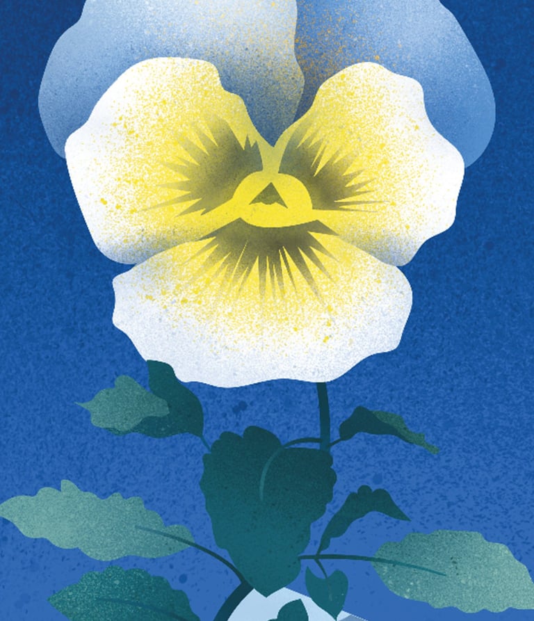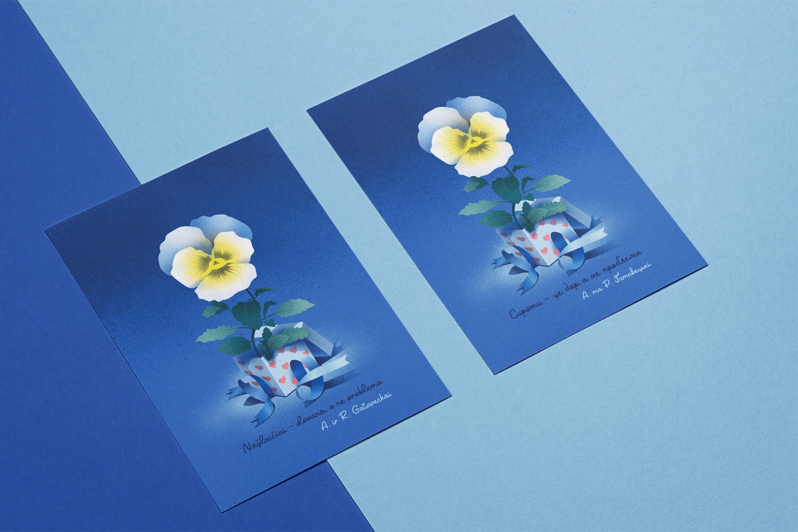 Sukūrėme atviruką, kurio centre – žydinti našlaitė. Iš pirmo žvilgsnio – trapi, tačiau labai ištverminga, nereikli gėlė, galinti augti nederlingoje žemėje.