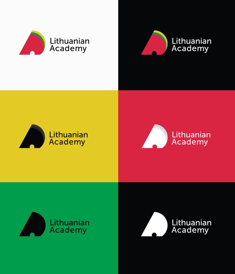 „Lithuanian Academy“ veidą, šūkį ir vizualinio identiteto sistemą, pritaikytą dar dviems organizacijoms.